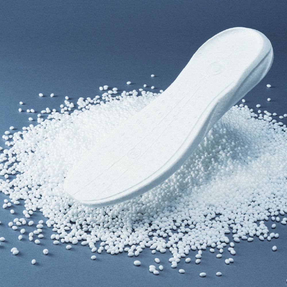 「発泡熱可塑性ポリウレタン(ETPU)」を採用。無数の発泡セルが衝撃を分散・吸収し、弾むような履き心地を実現します。