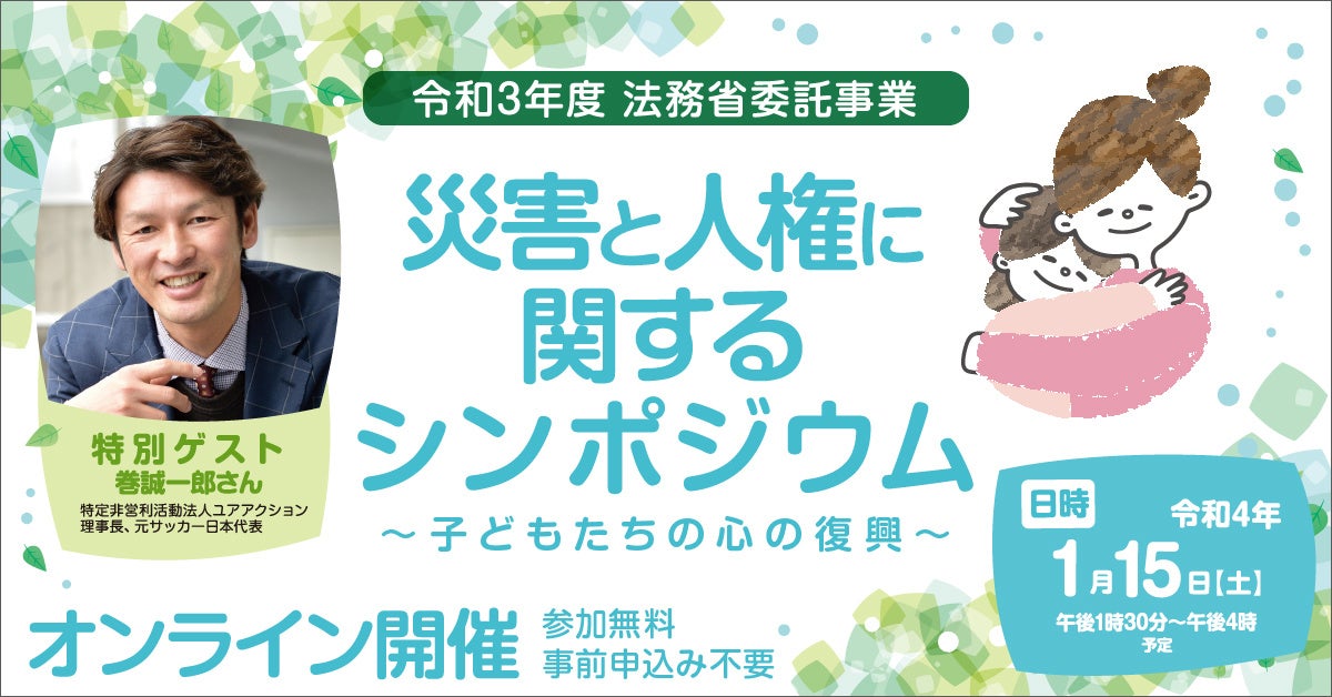 1月15日(土)午後1時30分~「災害と人権に関するシンポジウム~子どもたちの心の復興~」(法務省委託)