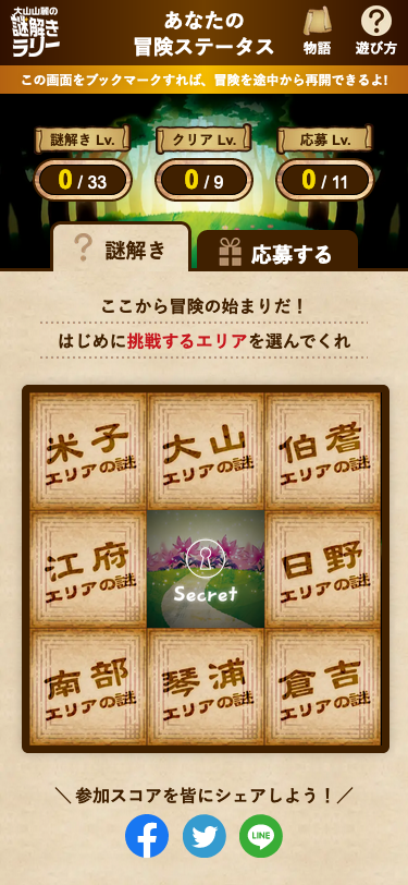 - 最終問題に正解したらエリアクリア!プレゼントに応募しよう!