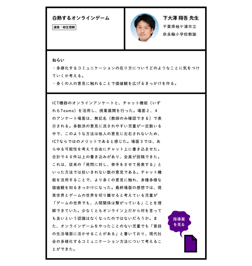 さらに新コンテンツとして、現職の先生が教材を活用して行った授業の指導案を紹介する「私ならこう使う」も公開しました。今回は以下の2作品となっております。