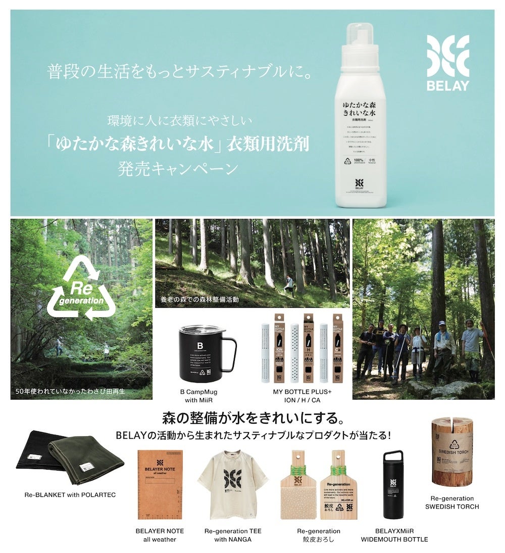 BELAY Inc.運営のmountain-products.com内洗剤ショップページにて10月30日より「ゆたかな森きれいな水」発売キャンペーンを開催します。洗剤を購入いただくと応募抽選でBELAYの活動から生まれたサスティナブルなプロダクトが当たります。
