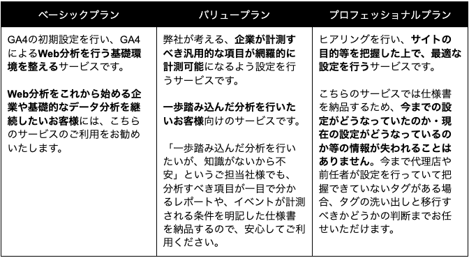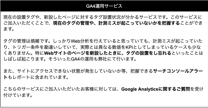 当社のGA4導入・運用サービスの詳細に関しては、サービス紹介ページをご覧ください。