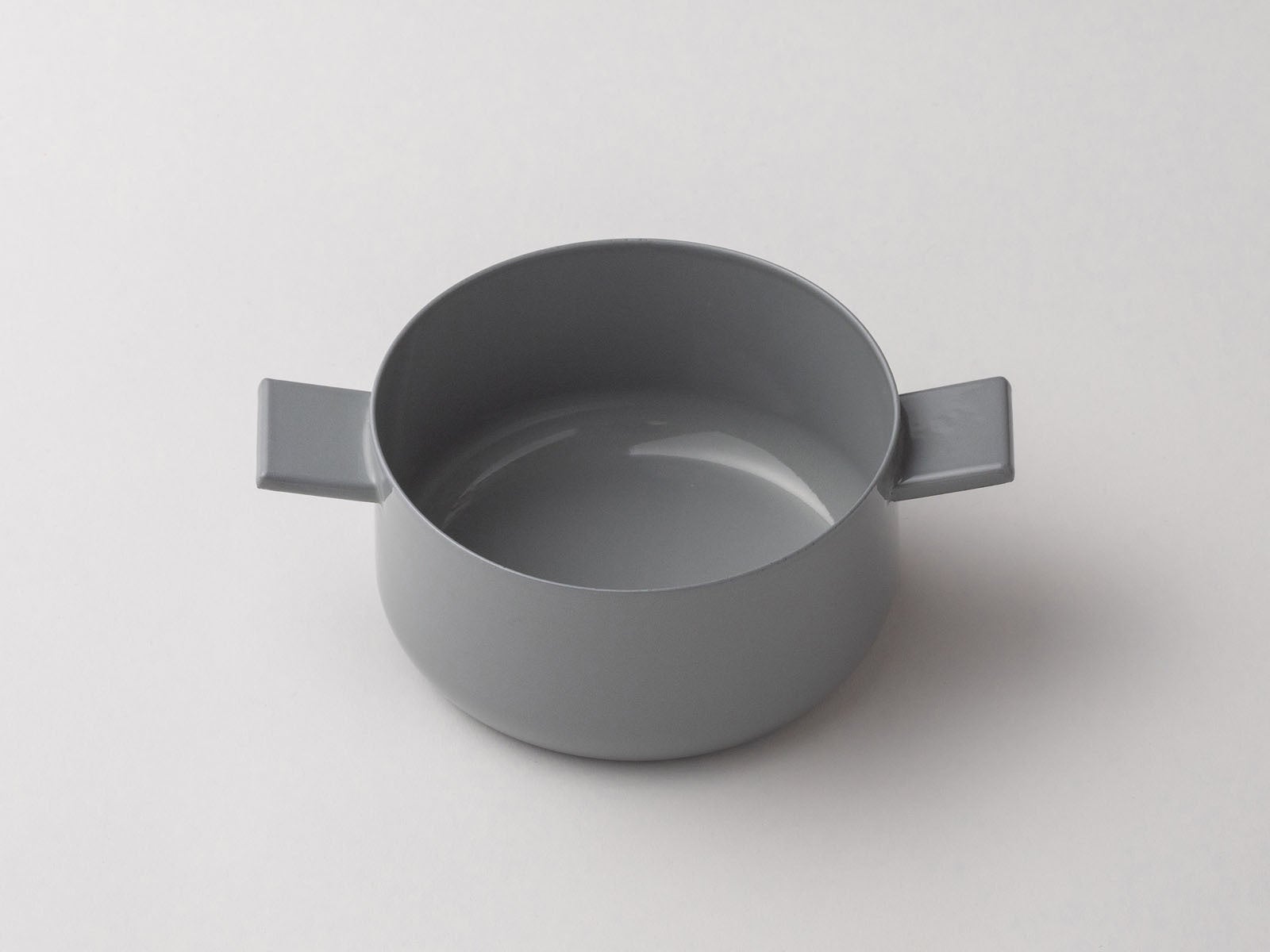 厚さ1.2mmのホーロー鋼板を、ヘラ絞り技法で深さ7cmの深型に成形し、シリーズとなる厚さ0.4mmのホーロー加工を施工。これによって火の通りが均一で、素材の旨みを逃さず調理できる鉄本来の性能に加え、酸や塩分にも強くなり、鉄特有のにおい移りも軽減。鉄の調理性能とホーローの実用性を兼ね備えた、スープ料理にぴったりな深型鍋が完成しました。