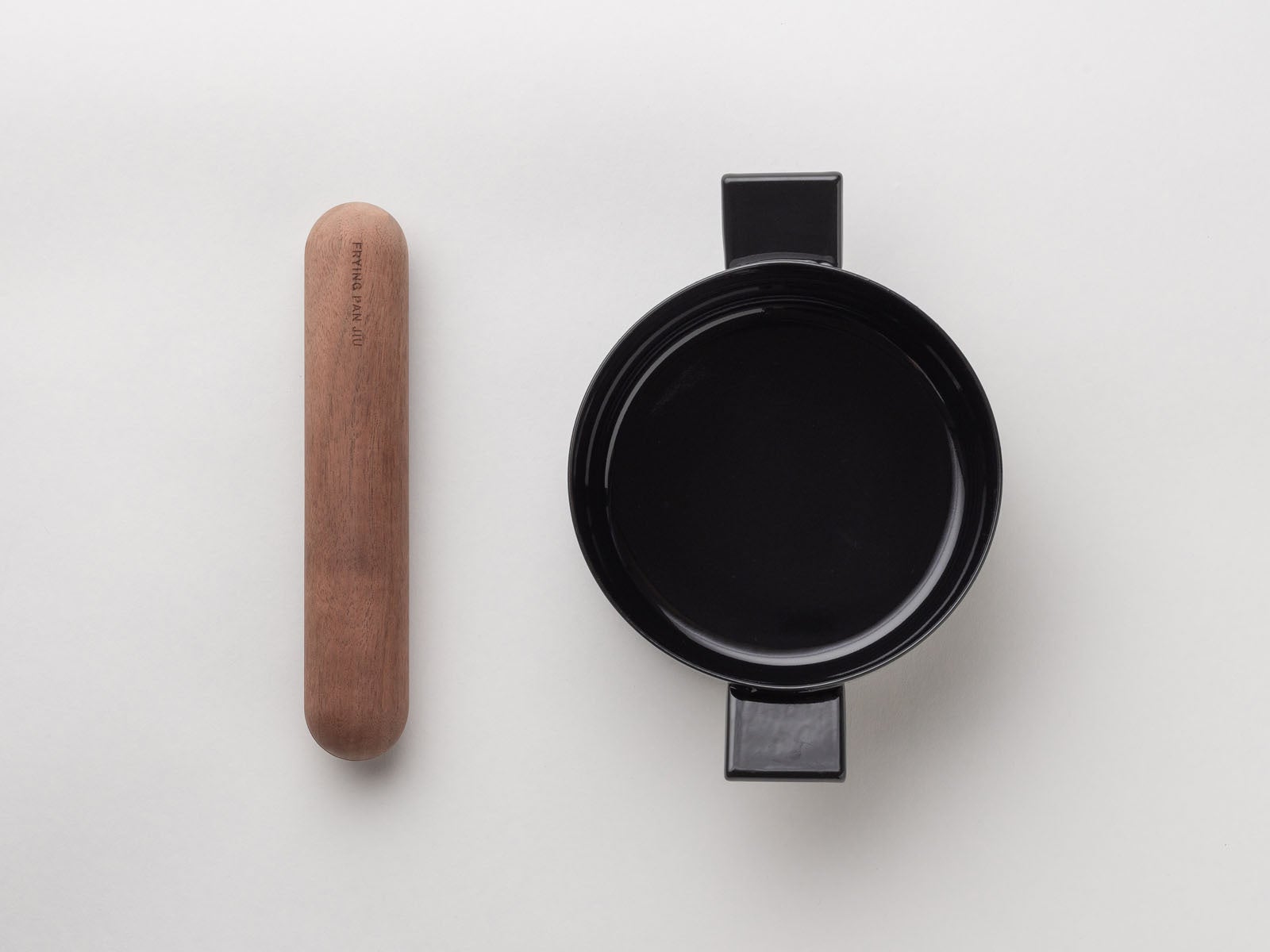 フライパンジュウブランド共通の着脱式ハンドル構造を採用。また、直線と曲線だけで構成されたミニマルなフォルムに、ホーローならではの深みのある艶が加わり、食卓に溶け込む上品な佇まいを実現しています。