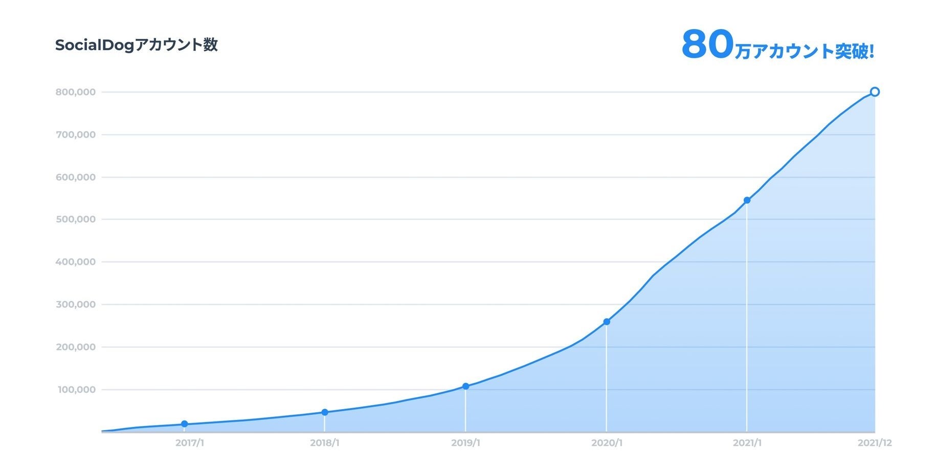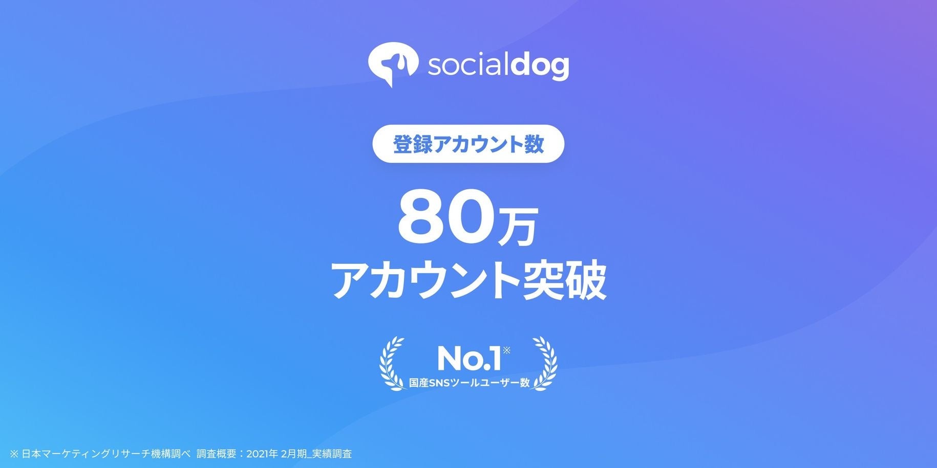 株式会社SocialDogが運営するTwitterアカウント管理ツール「SocialDog」のアカウント数が80万を突破したことをお知らせいたします。