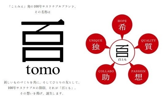 株式会社BUSが運営する「ことみえ」事業において、ものづくり事業者と共同開発される一連の商品のブランド名。持続可能性への希望、ものづくりの質の高さ、つくり手の想い、協業や共助、独自性などを兼ね備え、100年サステナブルの考えのもとに、「伝統工芸×革新」のものづくりを共(とも)に、友(とも)として実現していく、と言う想いを込めている。