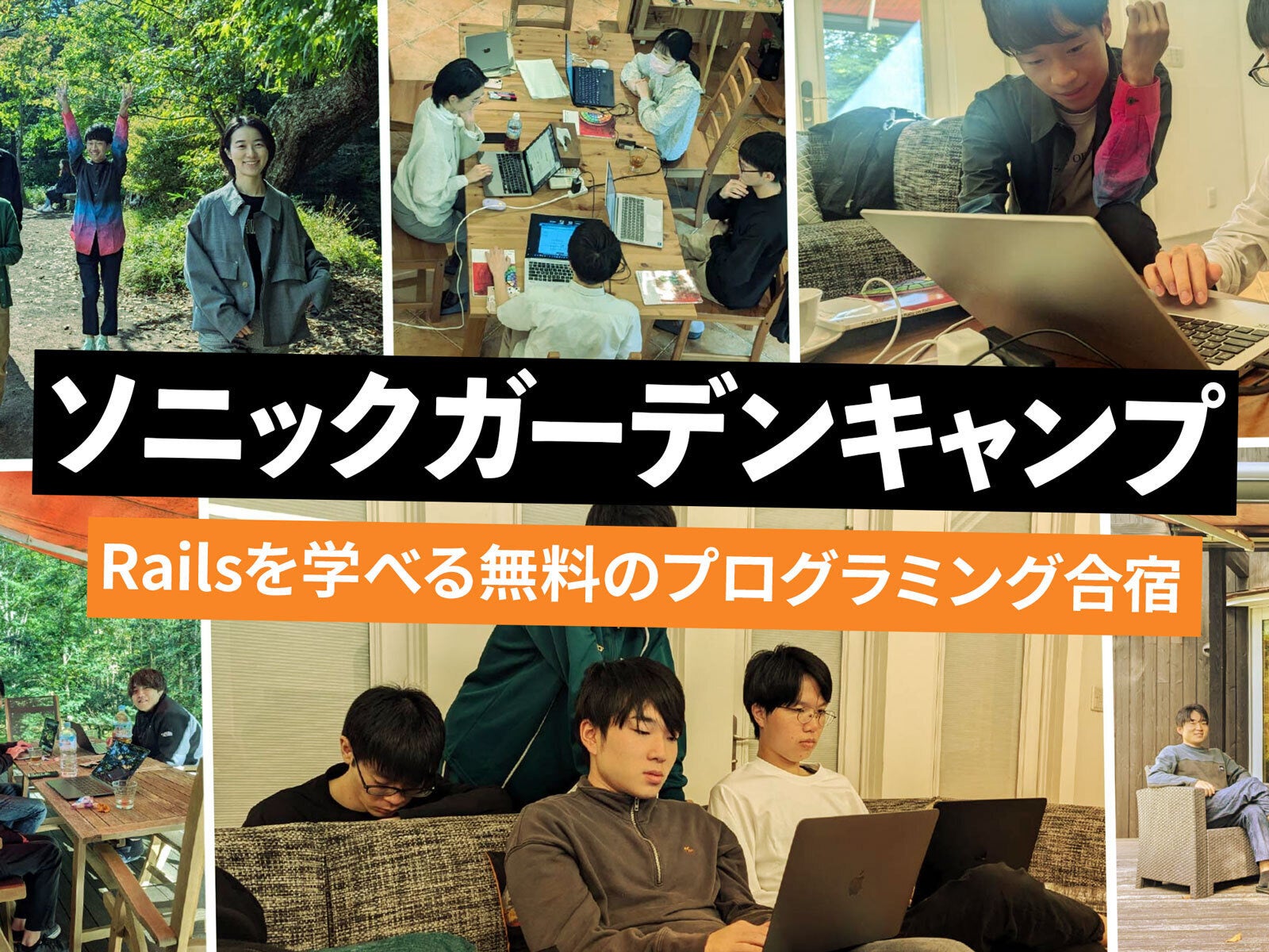 ソニックガーデンキャンプは、プロフェッショナルなRailsエンジニアを目指す人のため、同じ志を持つ仲間と共に実践的な経験を積むことができる無料のプログラミング合宿です。