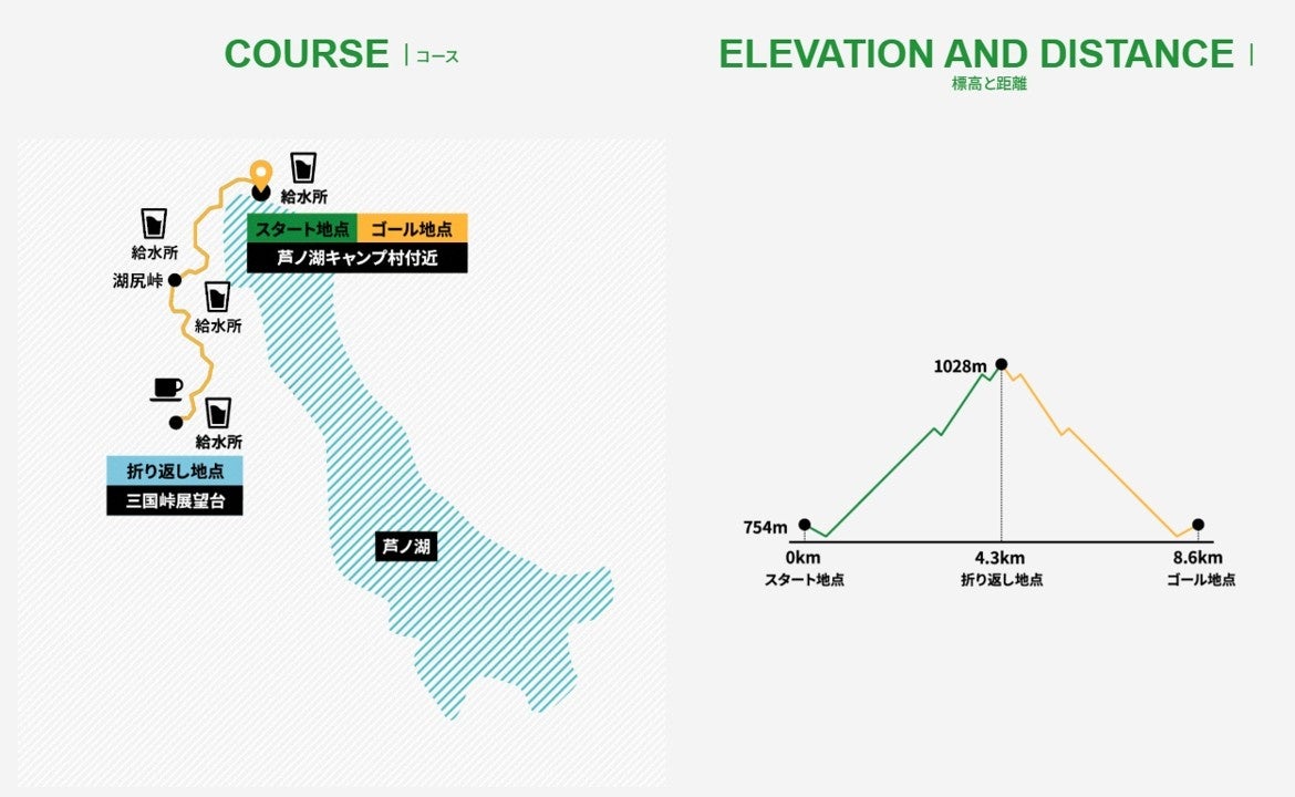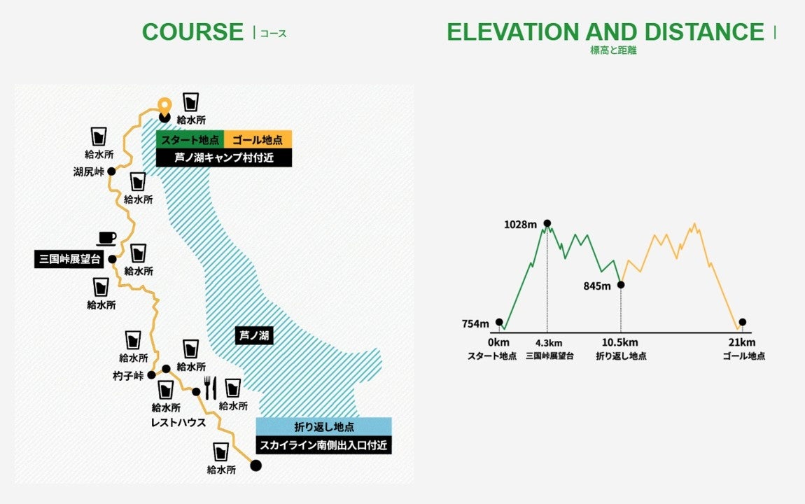 芦ノ湖スカイライン往復のハーフ(約22Km)とショートコースの三国峠ラン(約9Km)の2つのカテゴリーから選んでエントリーをすることが可能です。
