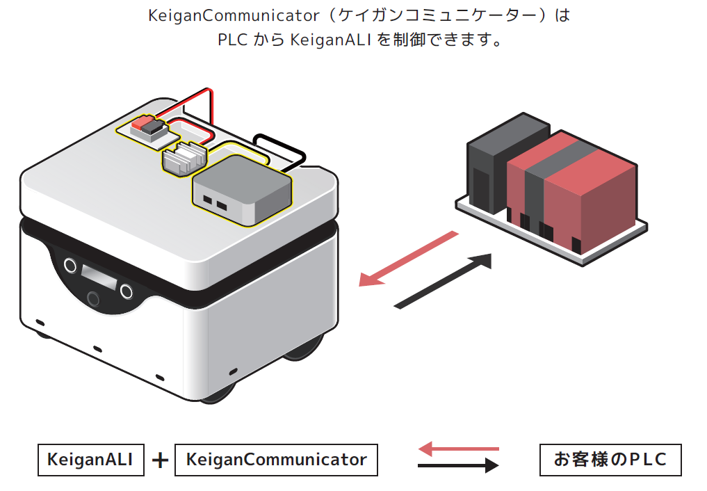日本国内の製造現場では、PLC(Programmable Logic Controller)によるシーケンス制御を利用した生産システムが普及しています。発売当初より、お客様より「PLCからの制御を可能にしてほしい」という要望が多数ありました。この度、「KeiganCommunicator」というソフトウエアを新しく開発し、KeiganALIとPLCの制御システムの連携を可能にしました。主に、下記のようなことができます。