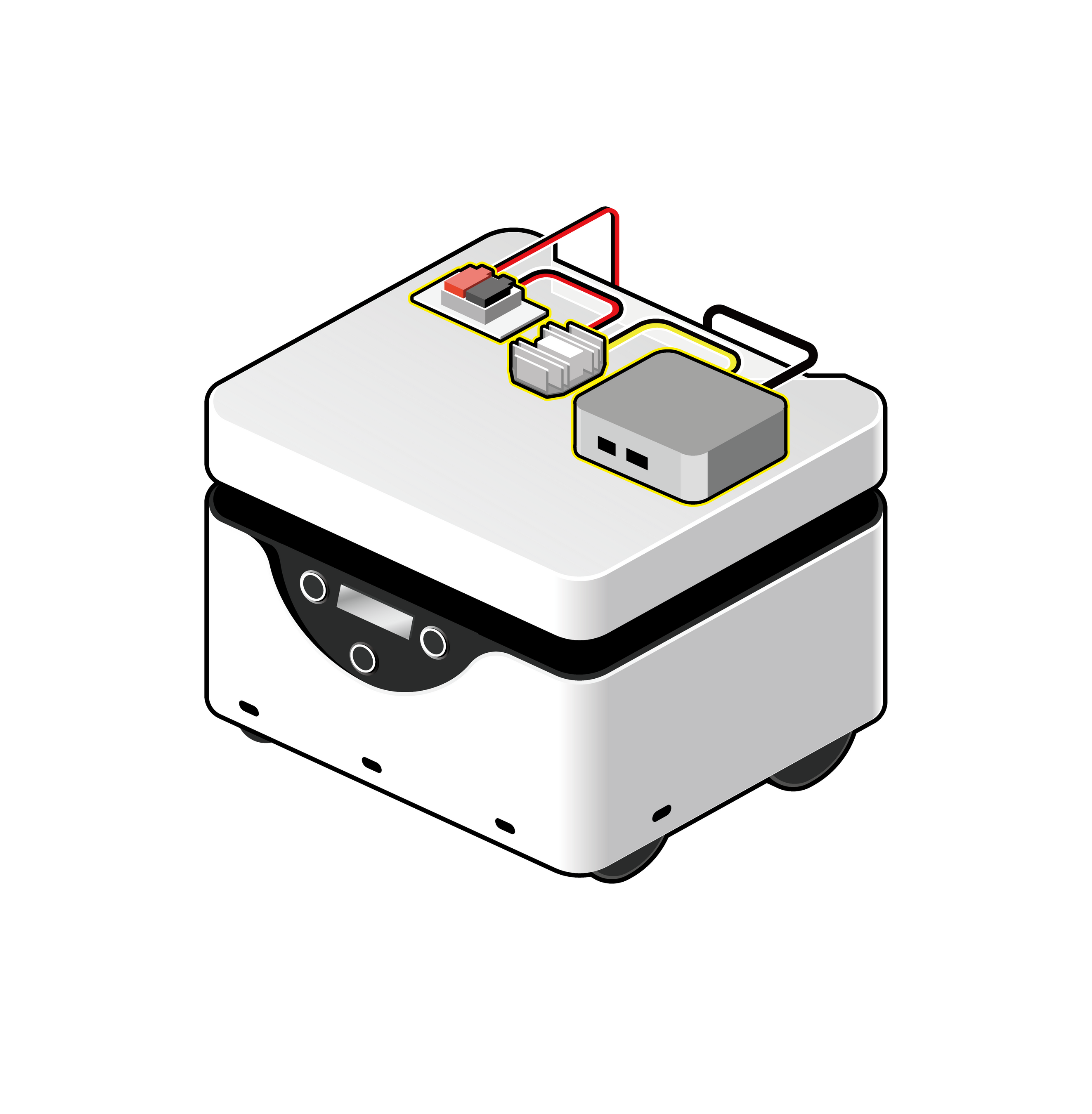 台車連結モジュールは KeiganALI 本体の上に固定して使用します。台車はお客様ご自身にて設計することもできます。設計条件は弊社 KeiganAMR サポートセンターにて公開予定です。