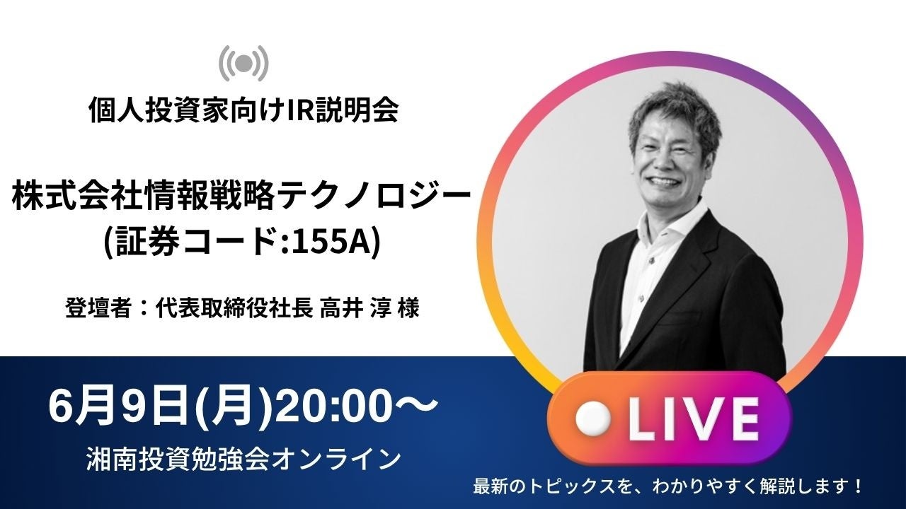 伴走型戦略DXファームとして日本の大企業のDXをあるべき姿にしていく株式会社情報戦略テクノロジーは、2025年6月9日(月)に開催された湘南投資勉強会主催の個人投資家向けIR説明会に参加し、そのアーカイブが公開されましたのでお知らせいたします。あわせて質疑応答についても掲載いたします。