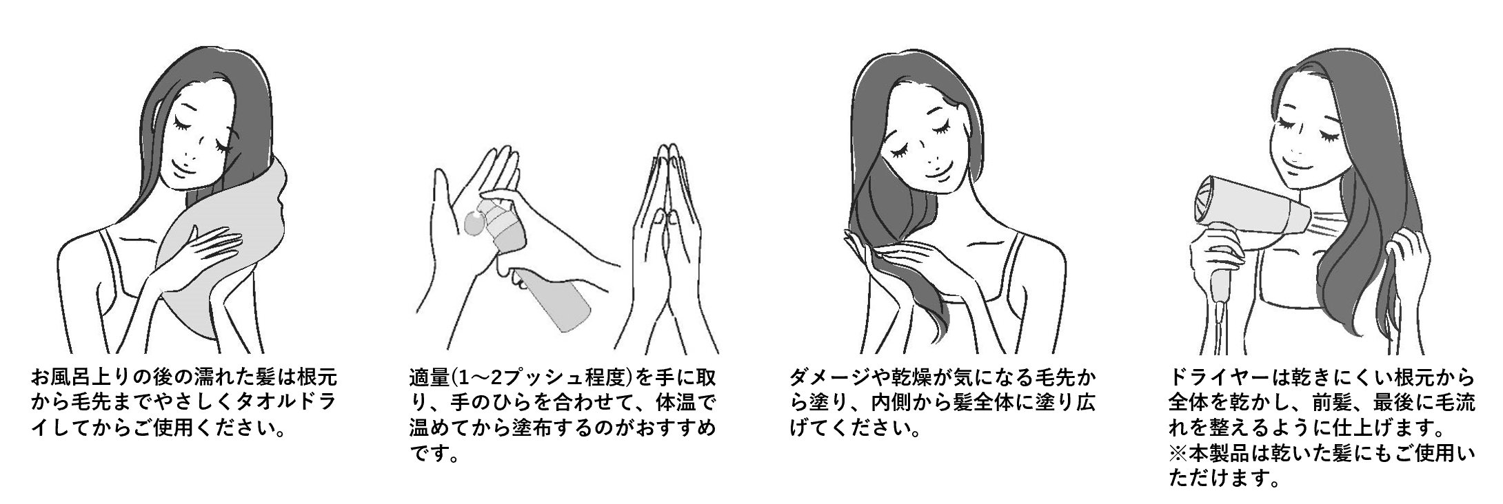 夜に使用すると翌朝の寝ぐせを和らげます。
