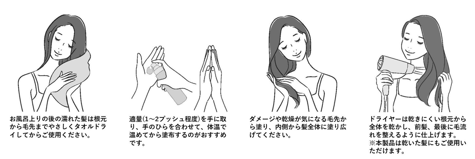キューティクルを整えながら髪に必要な油分を与えることで、うねりや絡まりを軽減。