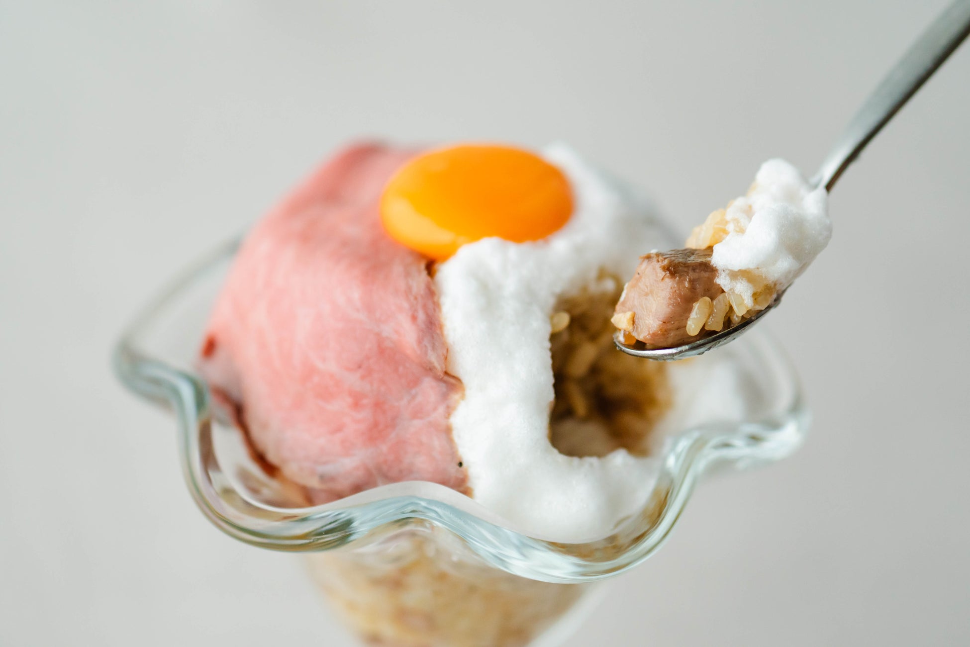 株式会社うずのくに南あわじが運営する「淡路牛肉巻きハンバーグ 今日は肉の日」では、淡路牛の魅力を最大限に引き出したバラエティ豊かなオリジナルメニューを発信しております。この度、淡路島のブランド黒毛和牛「椚座牛(くぬぎざぎゅう)」を使用した「椚座和牛 牛とろパフェ2,500円(税込)」を2025年7月25日(金)より販売開始しました。炙り和牛を加えた特製ガーリックライスに、上質なローストビーフとふんわりメレンゲを巻き、淡路島産放し飼い卵を載せた絶品和牛パフェに仕上げております。ふんわりトロけていくような食感が特徴で、ガーリックの香りと新鮮な卵が椚座牛の旨みを引き立てる、当店でしか味わうことのできないオリジナルメニューです。