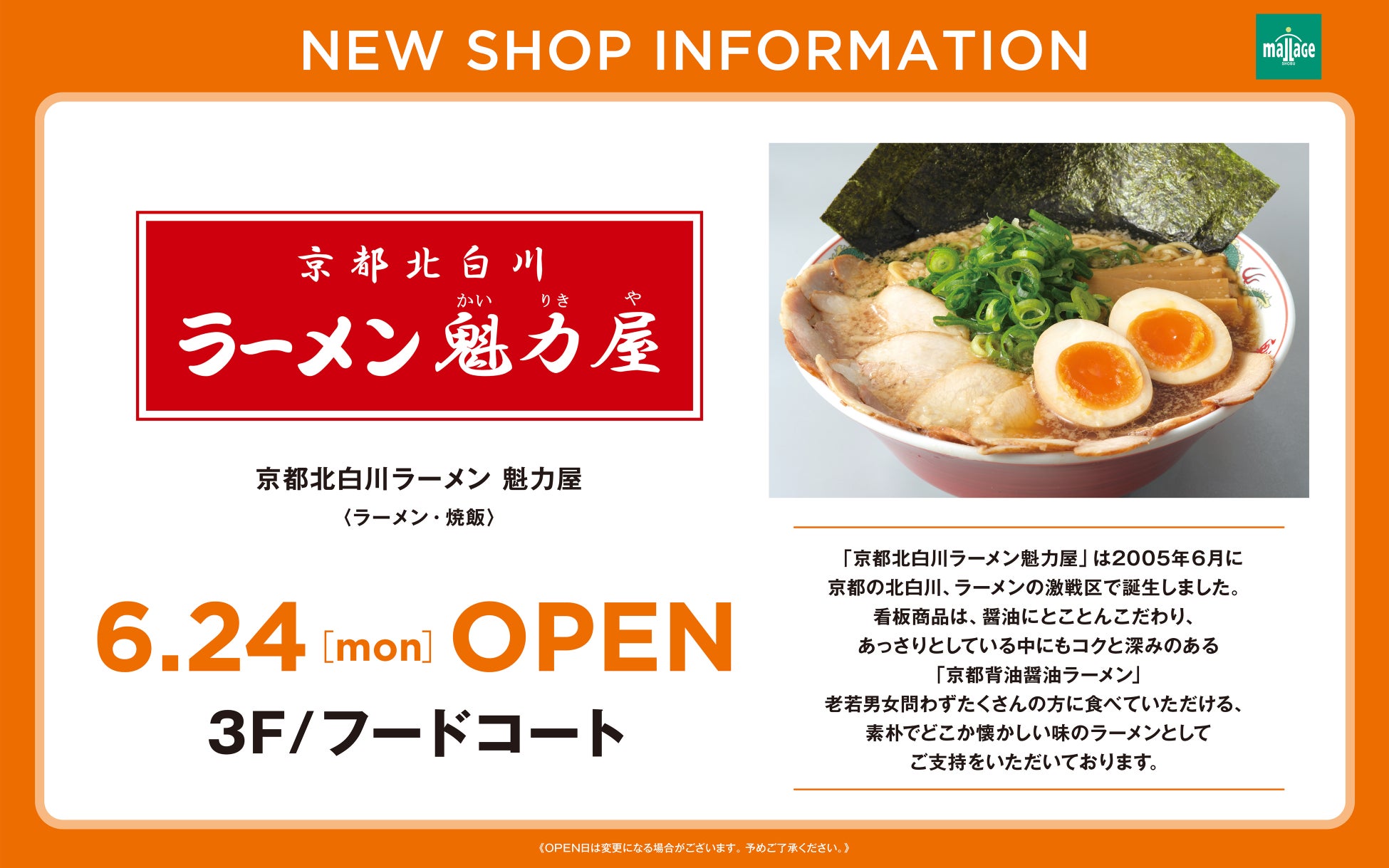 そしてこの度、5月27日(月)には1階レストラン街に定食・焼魚・鰻などを提供する「しんぱち食堂」が開業。6月24日(月)にはラーメン・焼飯の「京都北白川ラーメン 魁力屋」が開業予定となっており、更なる食の楽しみをご提供いたします。