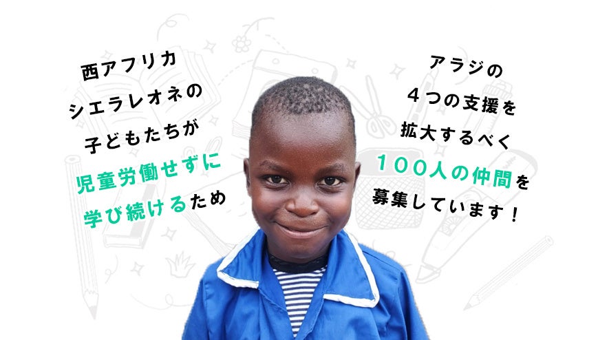 「欲しい未来に、寄付を贈ろう。」を合言葉に、12月は全国的な協働キャンペーンが行われる寄付月間(Giving December)です。この12月にNPO法人アラジは、現在シエラレオネで行っている、4つの教育支援事業において、安定的な活動継続と更なる拡大を目的とし、マンスリーファンディング(https://syncable.biz/campaign/2090/)を実施しています。