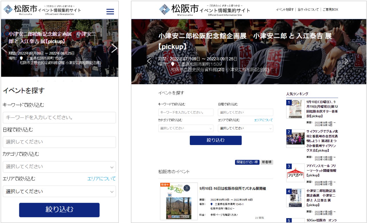 株式会社インフォモーション(本社:東京都目黒区、代表取締役:矢野祐輔)は、松阪市から委託を受け、市内のイベント情報を集約し地域住民と観光客に届けることにより、地域活性化に貢献する「松阪市イベント情報集約サイト」を2022年9月15日(木)に開設しました。
