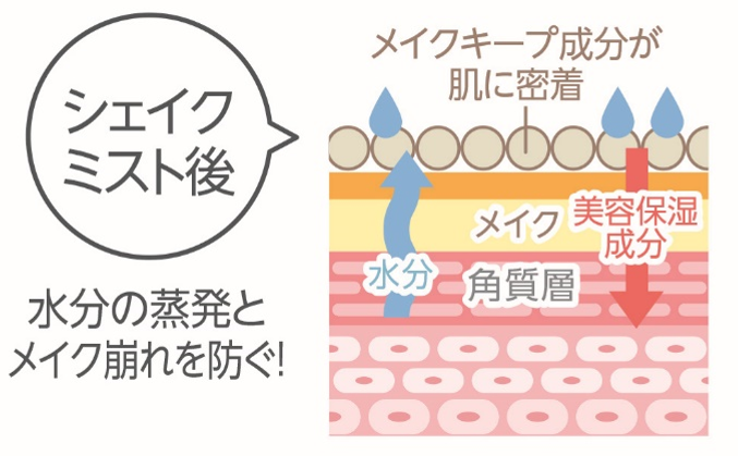 美容液で肌にうるおいをあたえると同時に、オイルでつつみ込みフタをすることで水分の蒸発とともにうるおいが飛んでしまうのを防ぎます。さらにメイクキープ成分(トリメチルシロキシケイ酸)で皮脂に強い保護膜を形成し、メイク崩れを防ぎます。