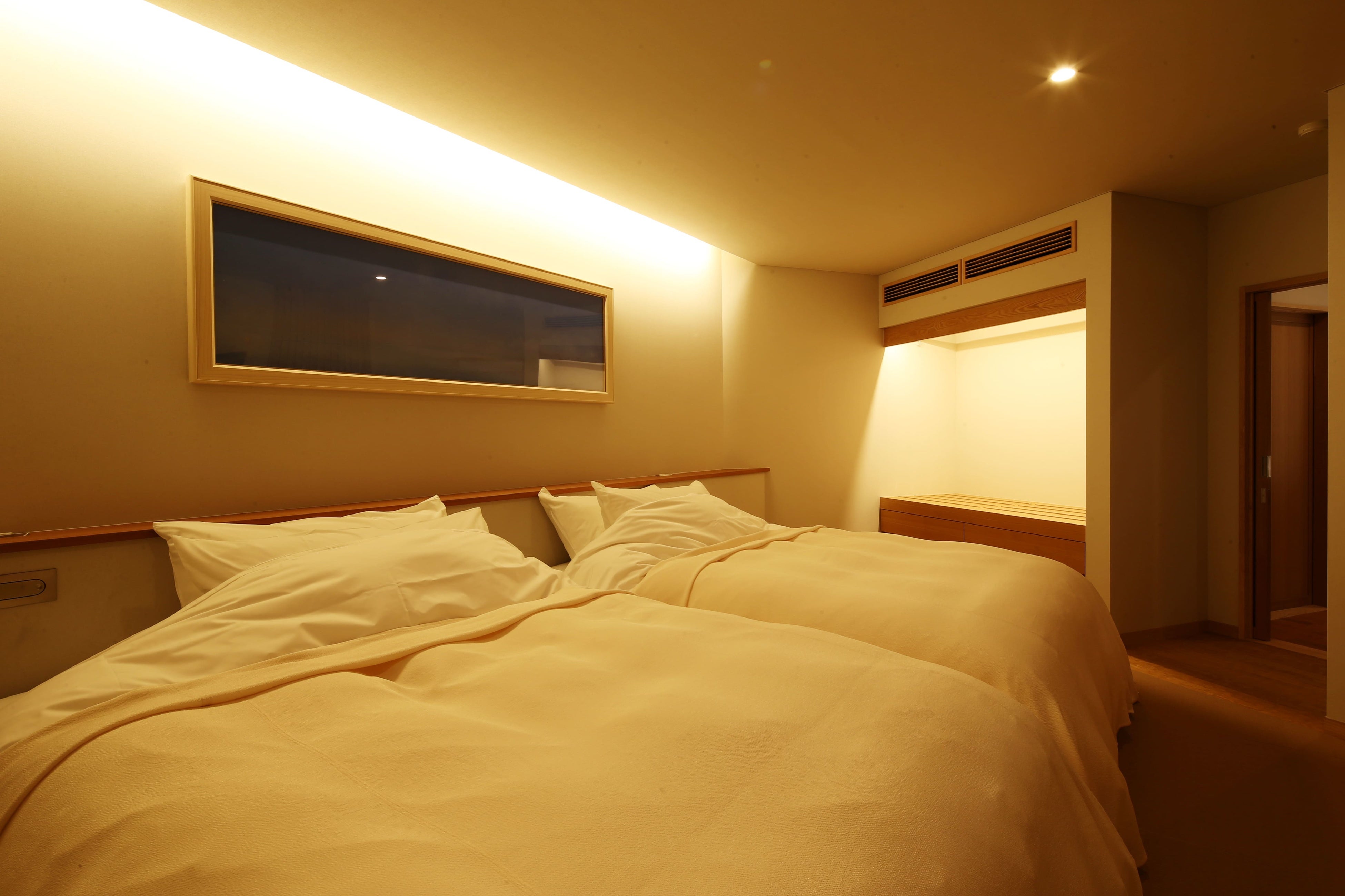 新客室ではベッドルームにキャリーバッグも配置できるスペースや、書院にてワーケーションや電話など集中できる空間を用意し、様々な旅程でも松露亭での滞在時間をより快適にお過ごし頂けます。