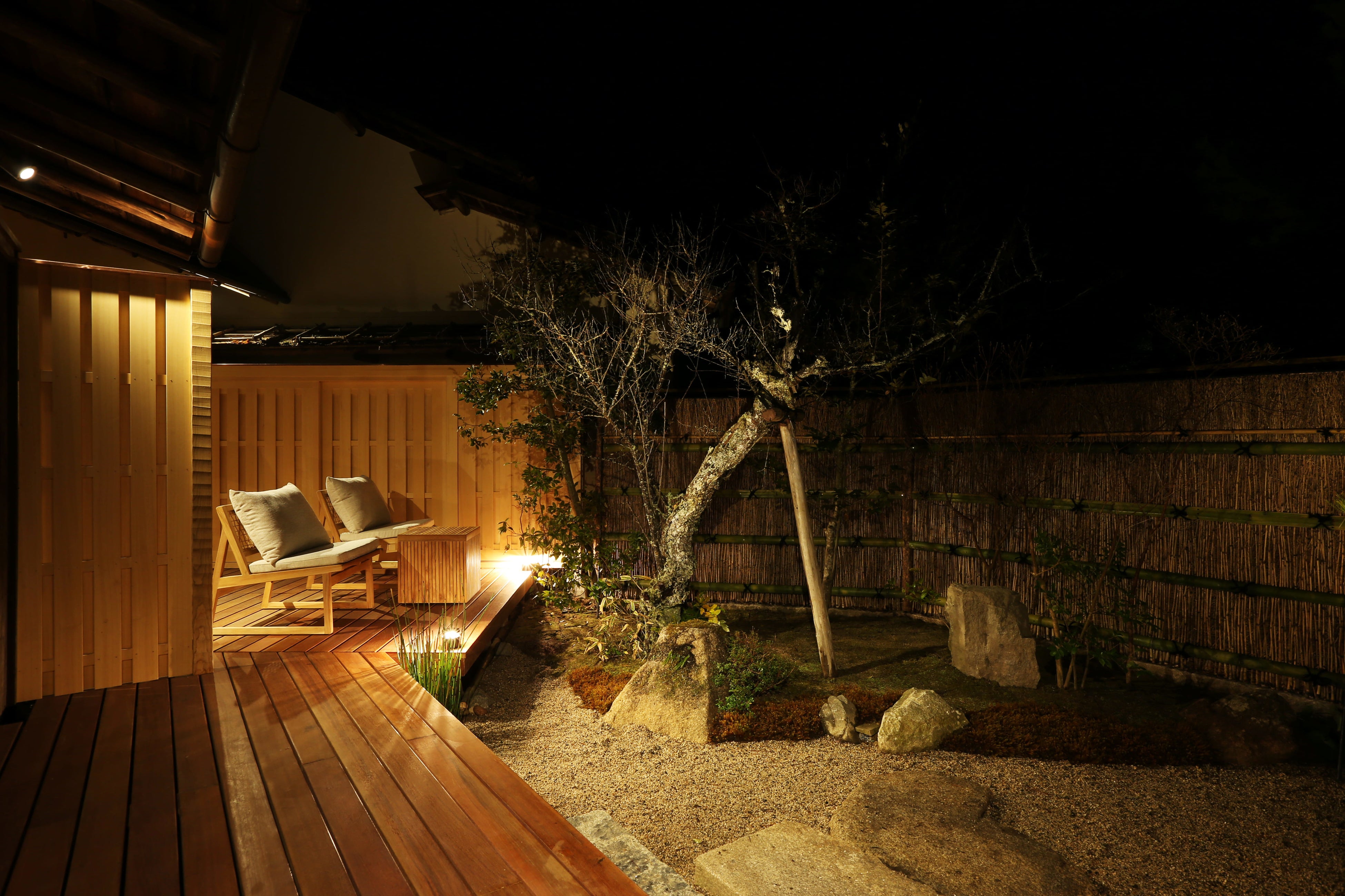 設計は京都市内の社寺・茶室設計にも精通した才門 俊文氏に依頼し、総平屋数寄屋造の良さを大切にしつつ、ベッドタイプの寝室やリビングなど現代的な過ごしやすさを取り入れました。