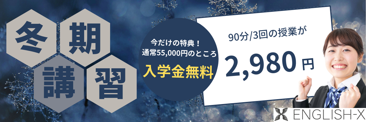 東京大学や早稲田大学・慶應大学の現役合格など多くの実績を持つENGLISH‐Xの授業を冬期講習(2023年12月1日(金)~2024年1月19日(金)の期間、全3回2,980円(税込)でご提供いたします。