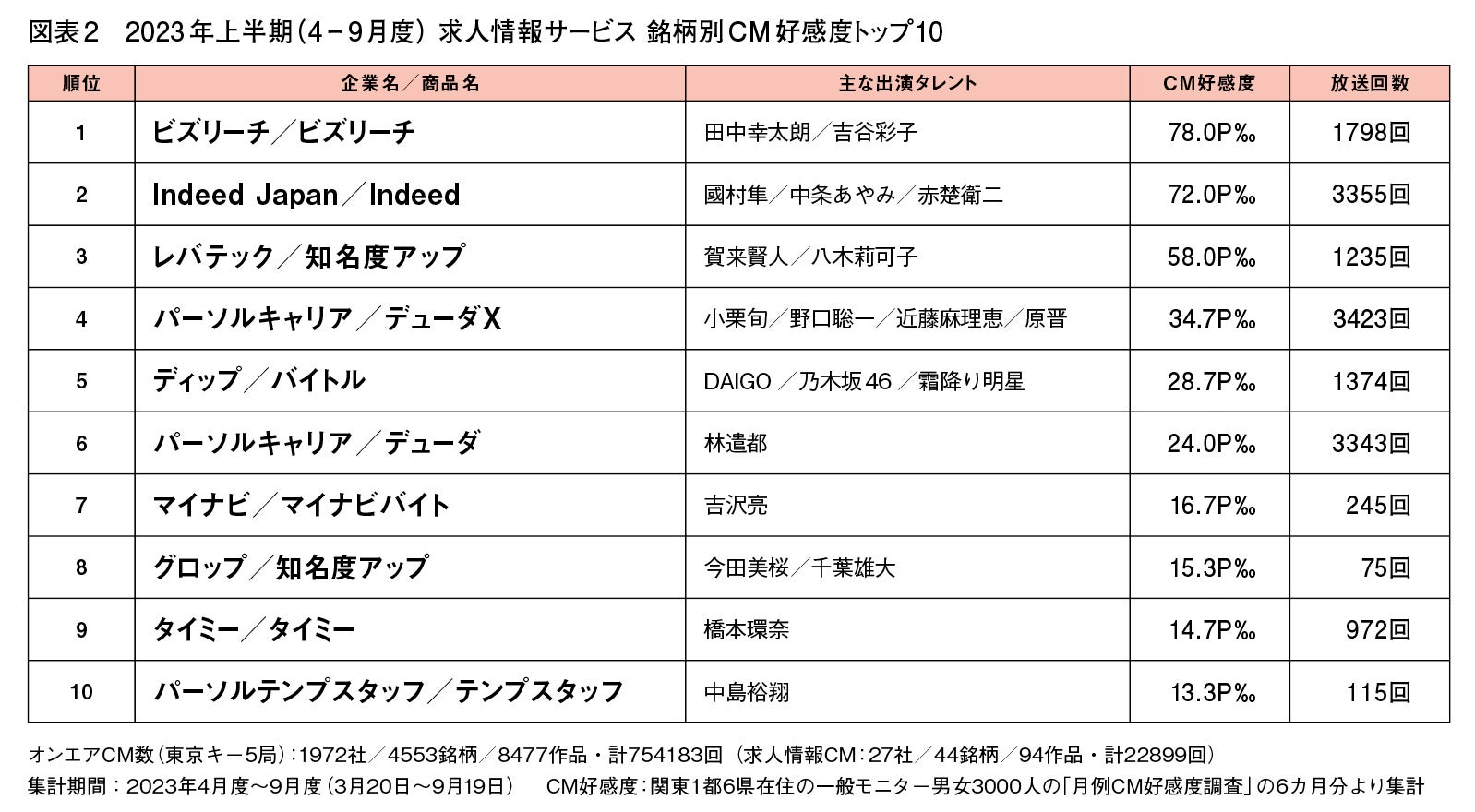 ハイクラス転職を中心に求人CMの放送回数が過去最多 今年上半期CM好感度でビズリーチが業界No.1 転職はポジティブな選択肢へ