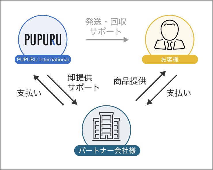 ププルのサービスを卸価格で仕入れ、自由な価格設定で販売することが可能です。契約・販売は貴社で行いながら、商品はププルが直接お客様へ発送・回収するため、在庫管理や物流の負担なく事業を展開いただけます。