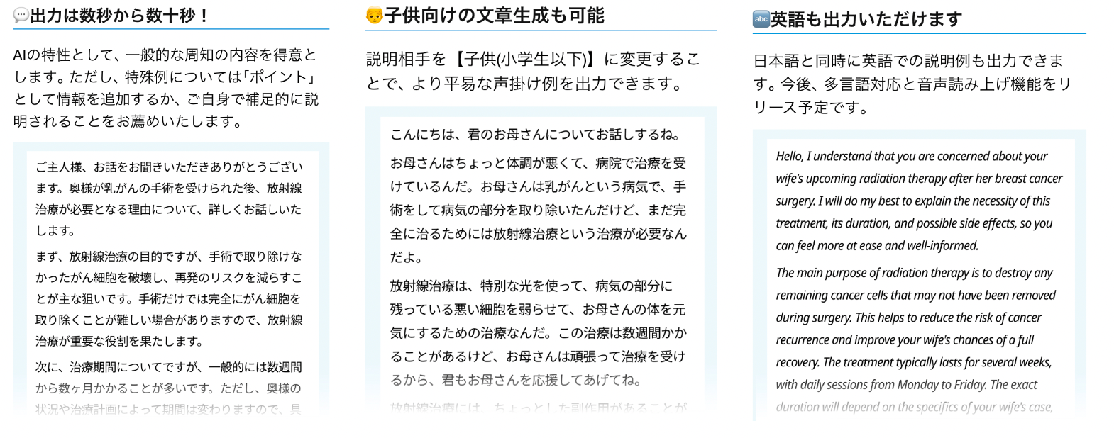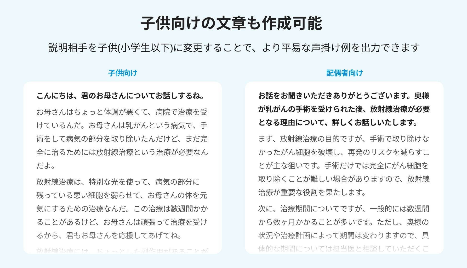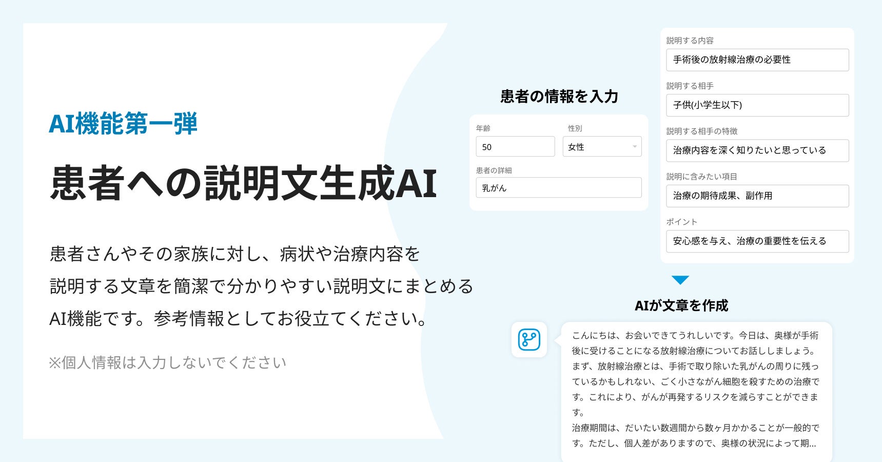 機能①【 患者への説明内容の考案を支援 】4月3日より提供開始