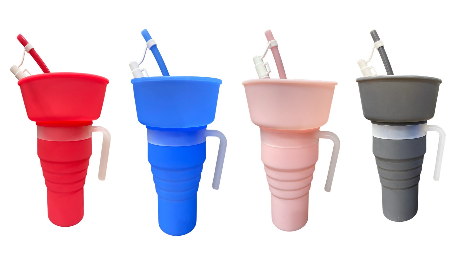 ドリンクとスナック菓子を片手で持てる⁉シリコン製ホームシネマカップ!販売開始から間もなく大ヒット!