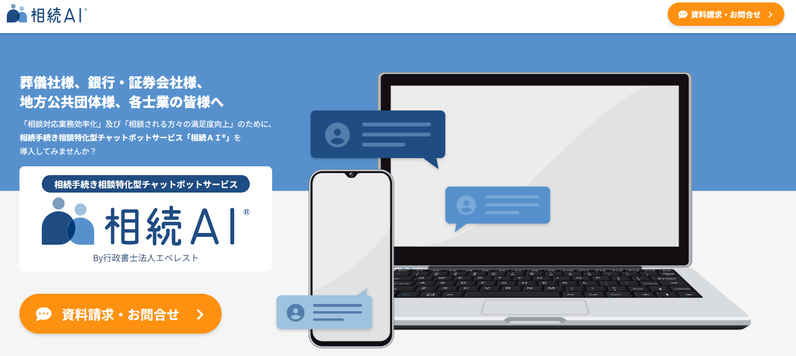 「相続AI®~相続手続き相談特化型チャットボットシステム~」を開発(及び事業者向けに販売開始)したのは、「相続手続きDX事業」に取り組む 【 行政書士法人エベレスト 】 です。