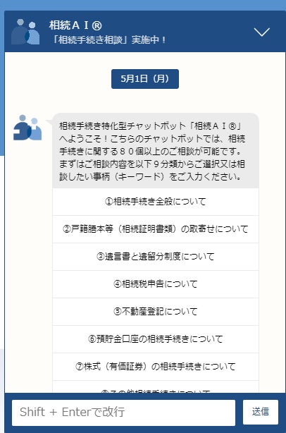 「相続AI® ~相続手続き相談特化型チャットボットシステム~ 」がついに登場!