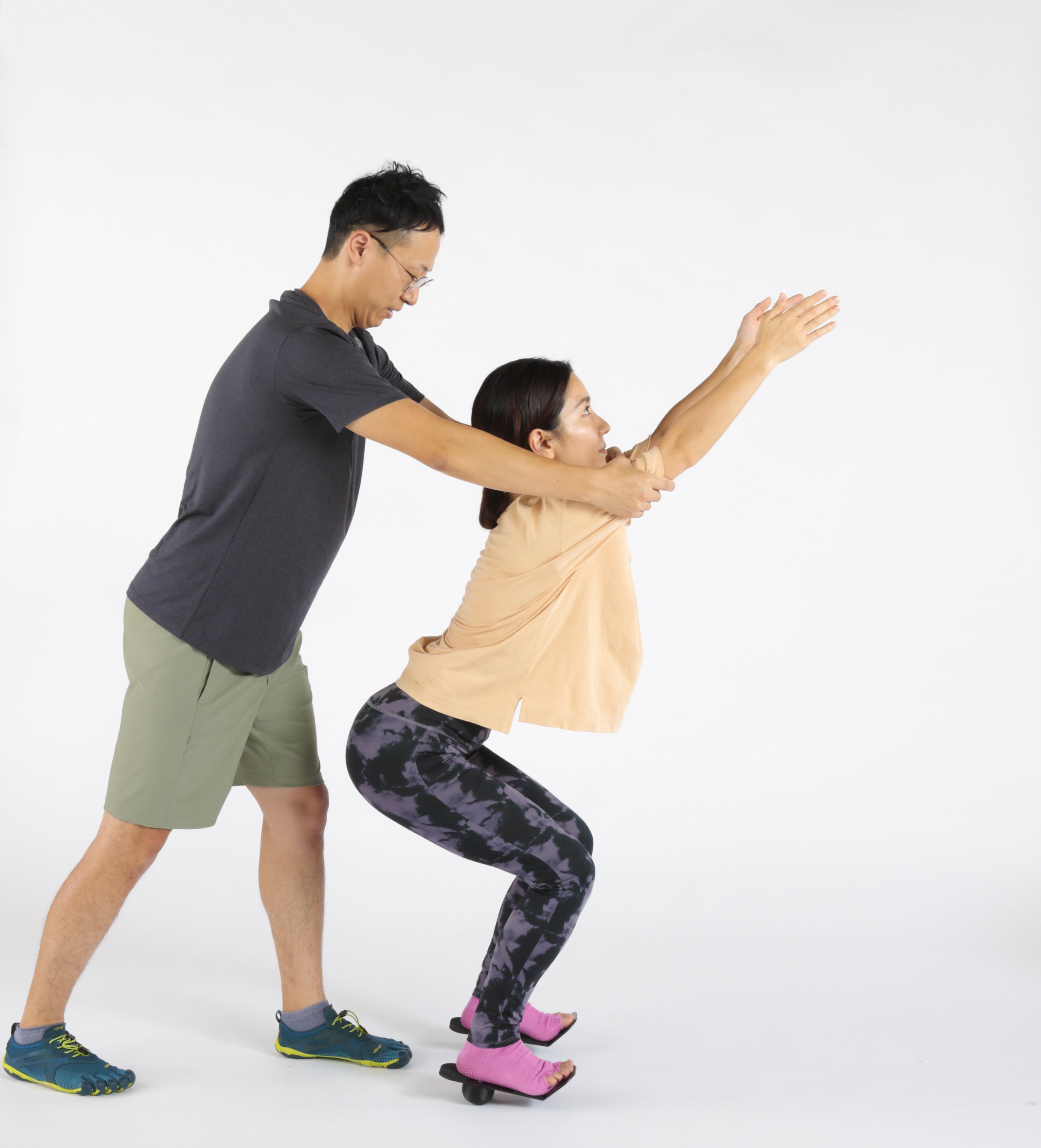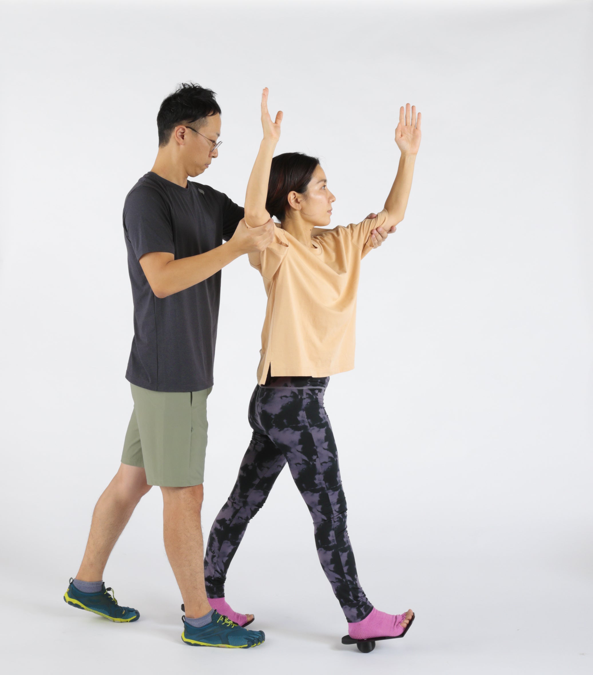 足裏には足底腱膜という強靭な腱組織があり、足の指を反る(伸展)することで、土踏まずを引き上げる機能である「ウィンドラスメカニズム」を有しています。扁平足の頻度は6〜25%と対象者によって幅はあるものの多いことが報告されています。バランスロッカーには、このウィンドラスメカニズムを起こす機構が足を乗せるボード部分に構成されていて、効果的に土踏まずの引き上げを行います。