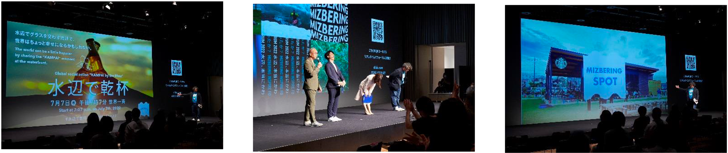 最後に総合MCの村山さん、坂本さん、山名氏、岩本氏が登壇し今後のミズベリング活動を紹介。出演者、参加者との記念撮影を実施し、フォーラムは終了。