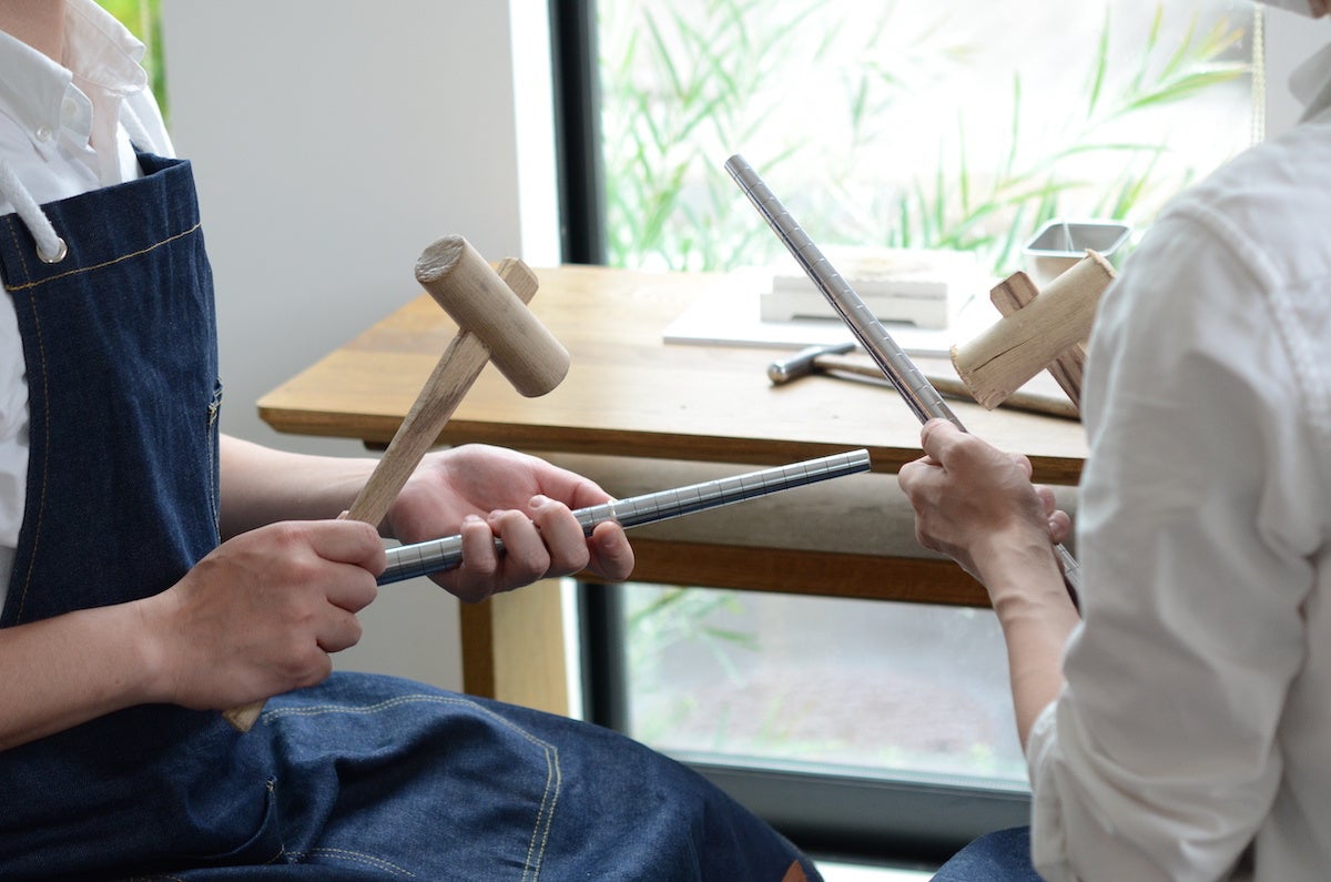 火を使って金属を炙ったり、カンカンとハンマーで指輪を叩いたり、ピカピカになるまで磨いたり...