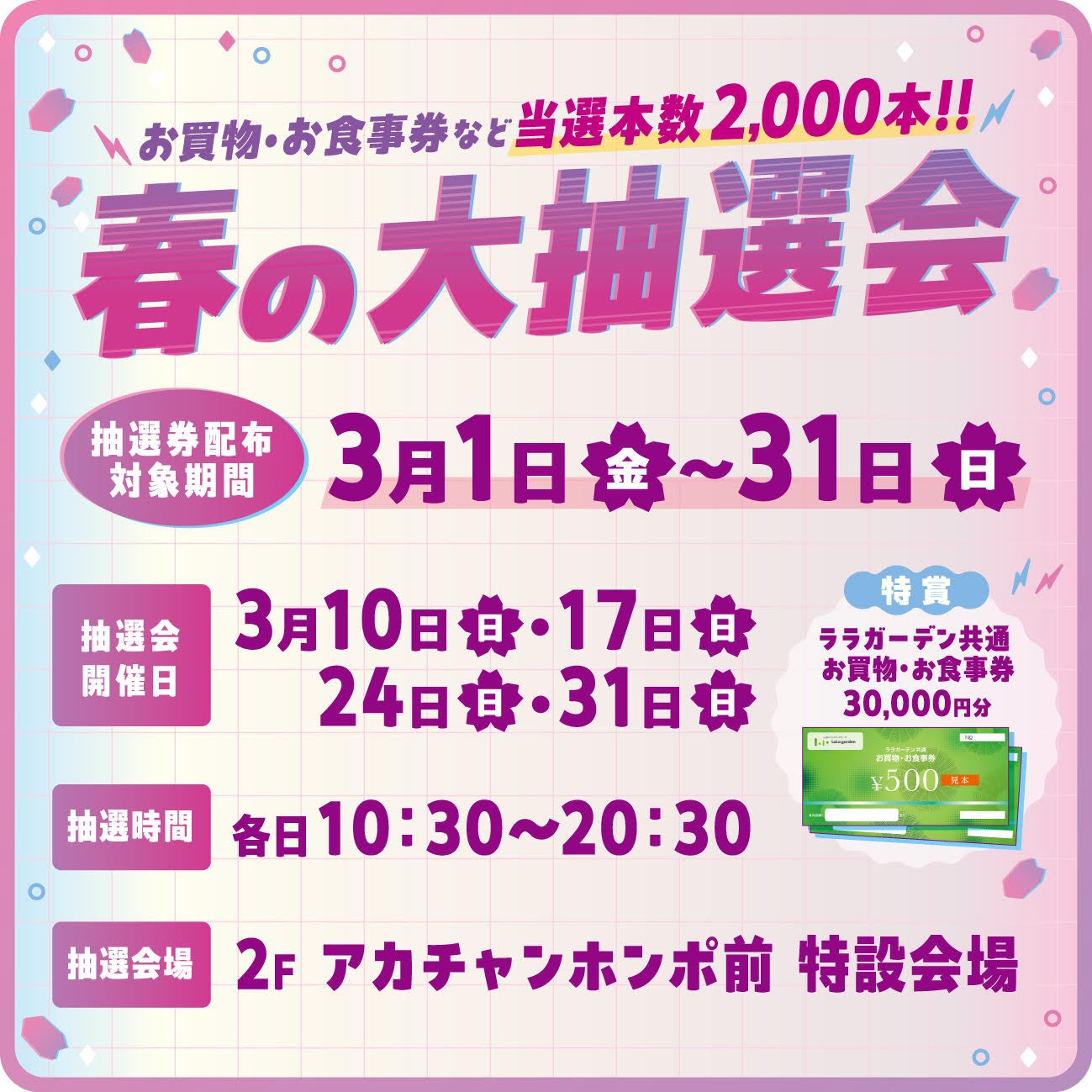 ■賞品 :ララガーデン共通お買物・お食事券他、当選本数2,000本