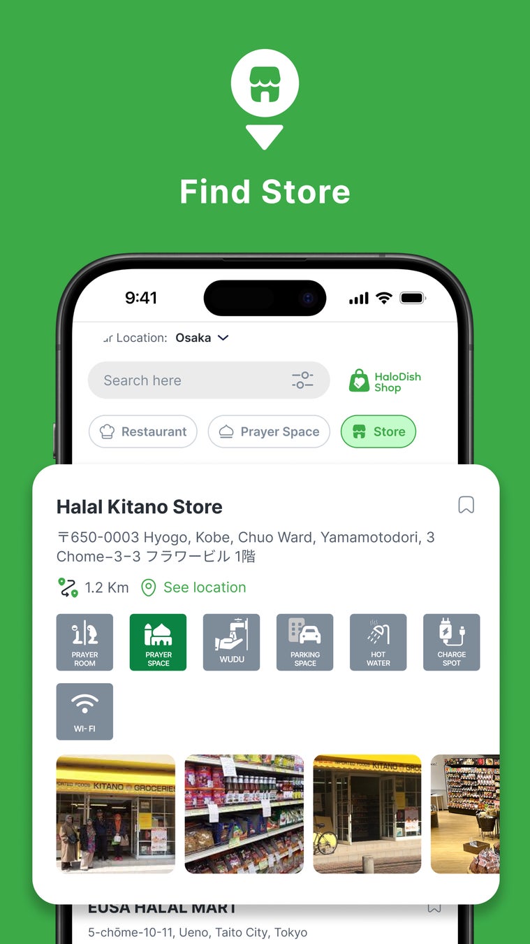 ハラールレストラン、食品店、礼拝スペース、モスクの検索、オンラインショッピングがアプリ1つで。掲載店/ハラール市場タイアップ積極募集中