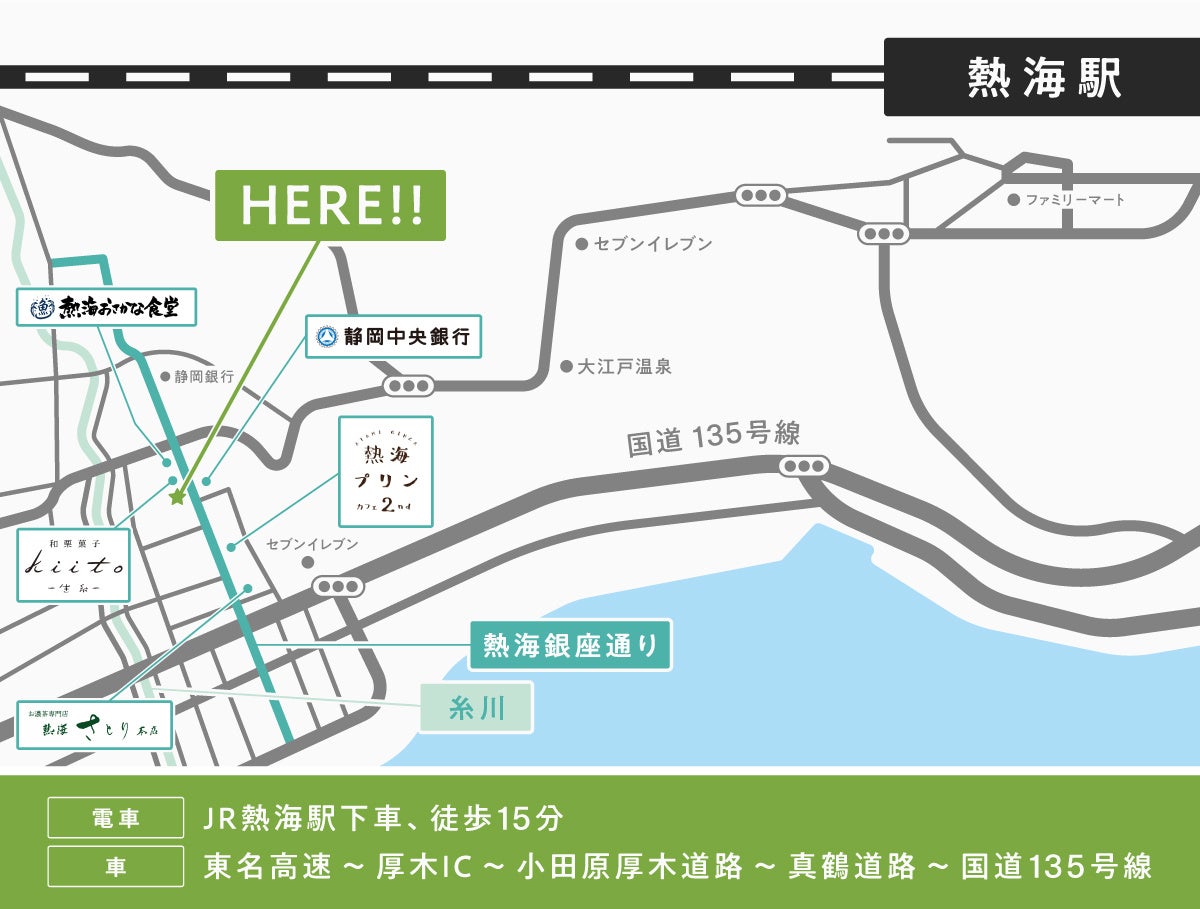 アクセス : JR熱海駅より徒歩15分、国道135号線より徒歩3分