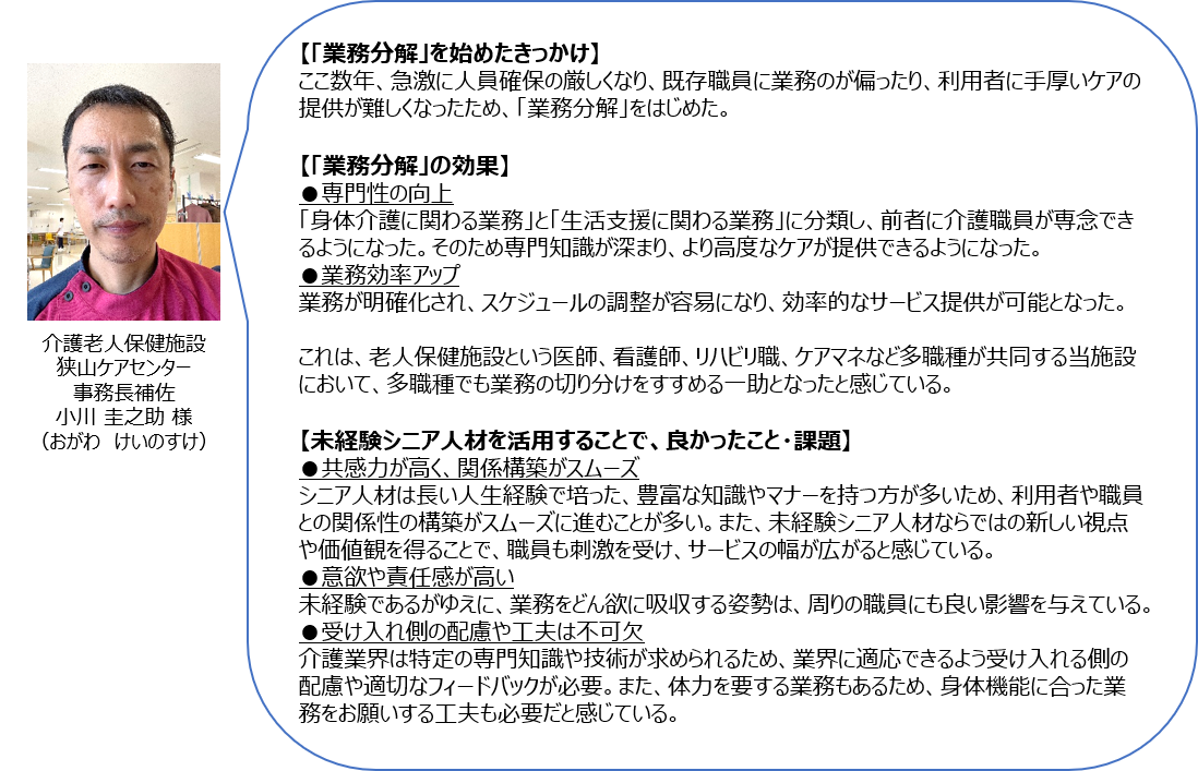 施設の声:「業務分解」をすることで、専門性や業務効率が上がる効果も