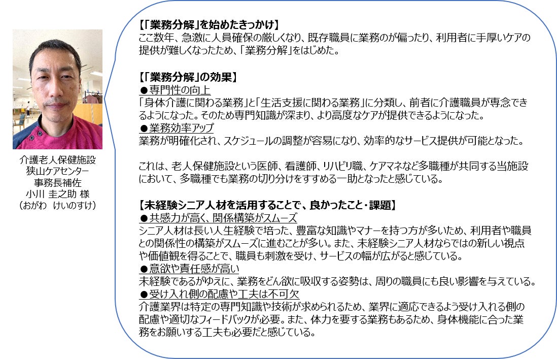 ~シニアならではの人生経験と介護補助業務をマッチングし、就業機会を創出~