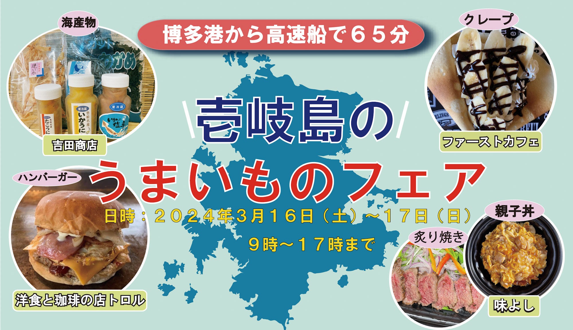 令和6年3月16日(土)~3月17日(日)の2日間、道の駅くるめイベント広場において「壱岐島うまいものフェア」を開催します。