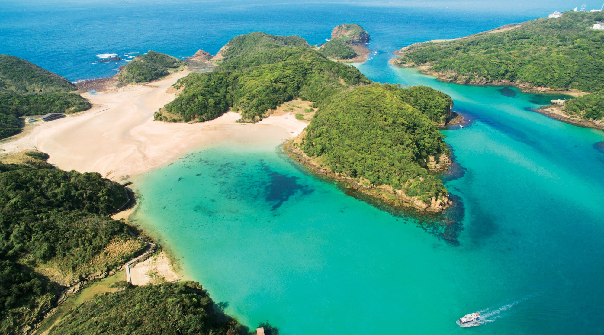 九州の玄界灘に浮かぶ長崎県の離島で、博多から高速船で約1時間、長崎空港から飛行機で30分の位置にあります。