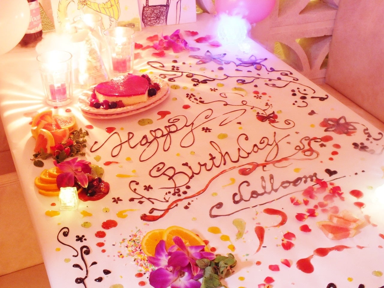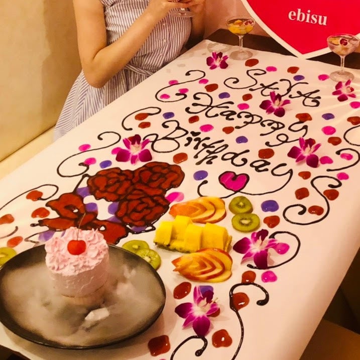 お客様の目の前でデザイン、文字などを書き誕生日や記念日に、テーブル1面を使いサプライズで