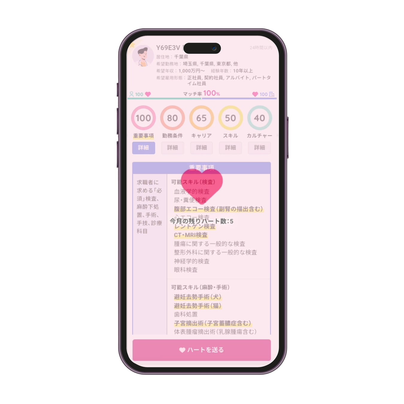 アンケートに答えるだけで簡単に求人票やプロフィールが作成。マッチングアンケートによるマッチ率をもとに、理想の職場・人材を効率的に発見できます。