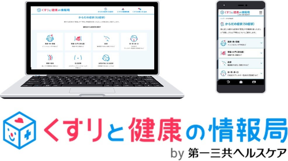 第一三共ヘルスケアでは、長年製薬事業に携わってきた経験と知識を生かし、「くすりと健康の情報局」を運営しています。気になる症状があればすぐスマートフォンで検索する時代に合わせ、身近な症状の原因・予防・対策や市販薬の役割などを紹介しています。症状が起こったときだけではなく、日頃から症状の特徴や薬に関する知識を深めるコンテンツをご用意し、情報を正確かつ分かりやすく伝え、セルフケア実践の一助となるサイトを目指しています。
