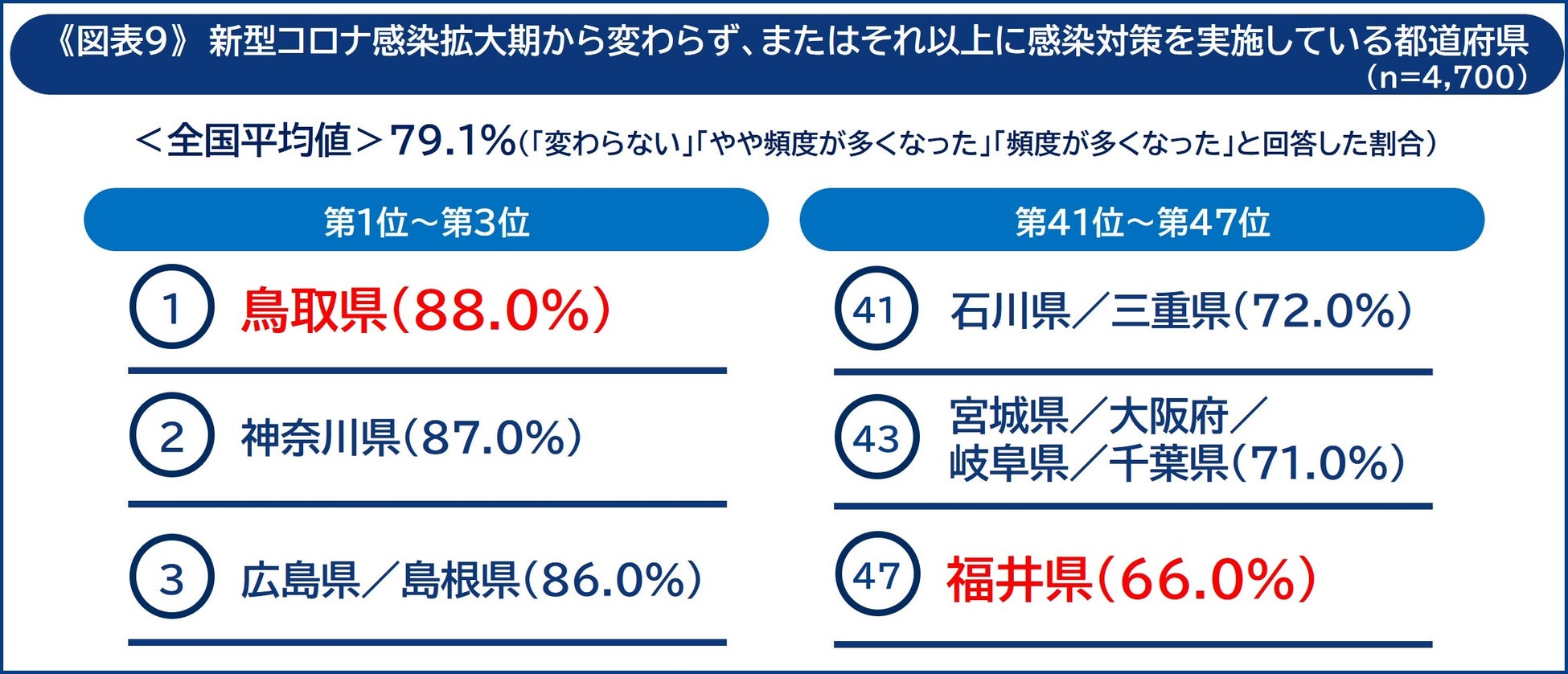 【TOPIC2】最も新型コロナ感染拡大期と変わらず、手指消毒や手洗い・うがいなどの“感染対策”を実施している都道府県は「鳥取県」。
