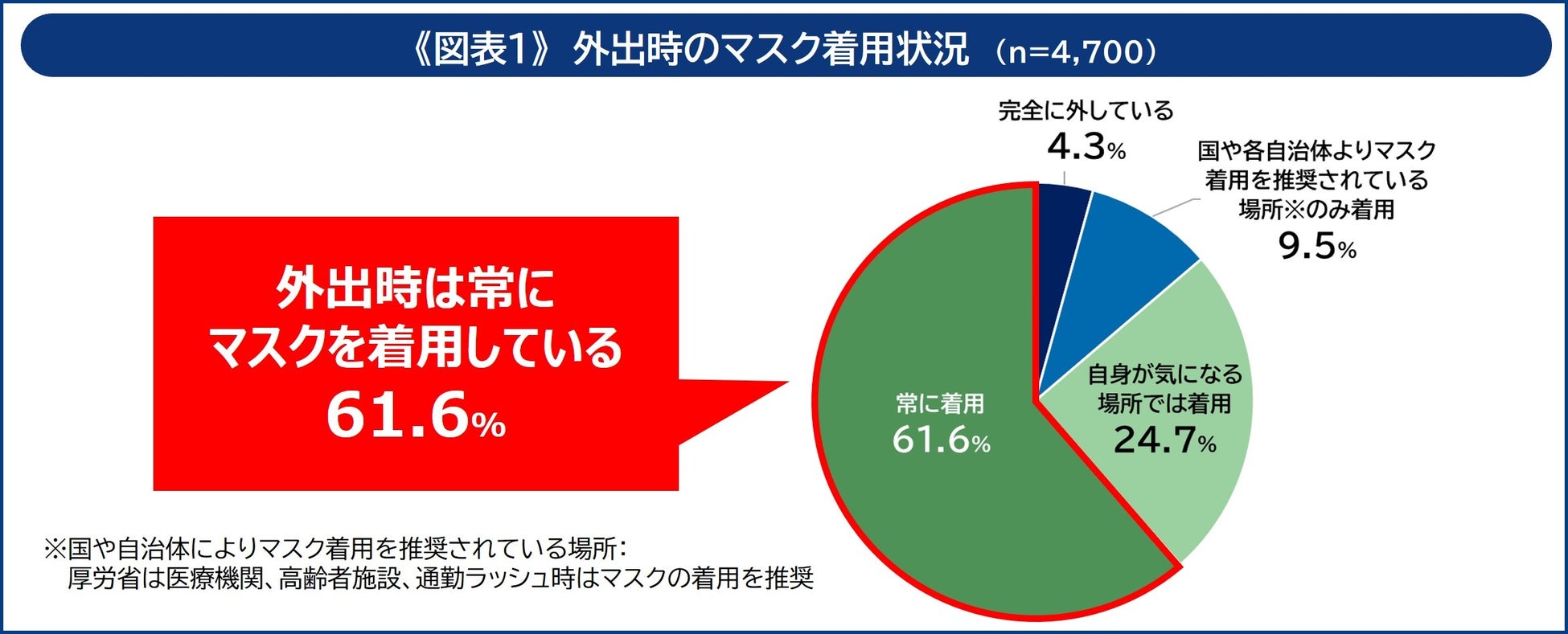 <全国47都道府県、「脱マスク」と健康意識に関する実態調査>マスク着用ルール緩和後も、6割以上が「外出時は常に着用」 マスク着用率は全国で「広島県」が最も高く、「奈良県」が最も低い