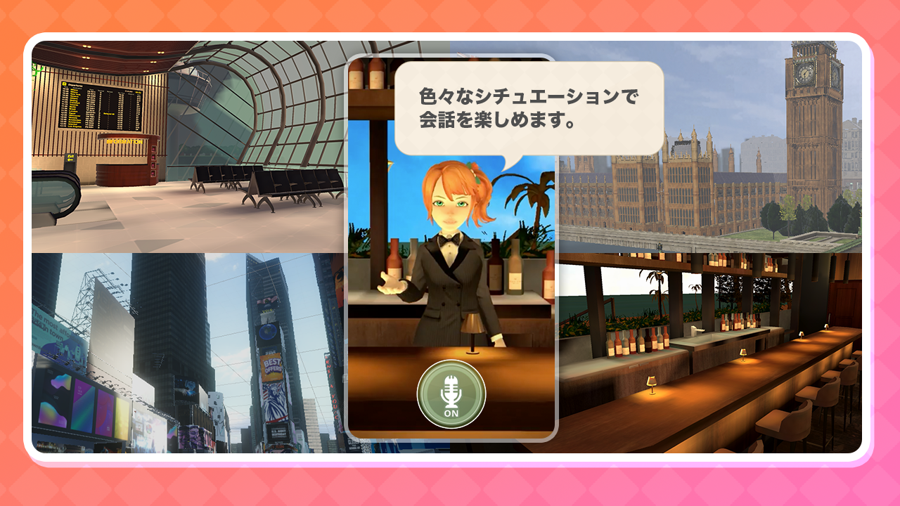 fondiは、スマホアプリで簡単にバーチャル留学のような体験を楽しめる英会話メタバースです。世界100カ国以上から集まる英会話学習者と、バーチャル空間でのコミュニケーションを通じてより実践的な英会話の機会を提供しています。
