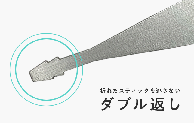 - 折れたスティックをキャッチする「ダブル返し」