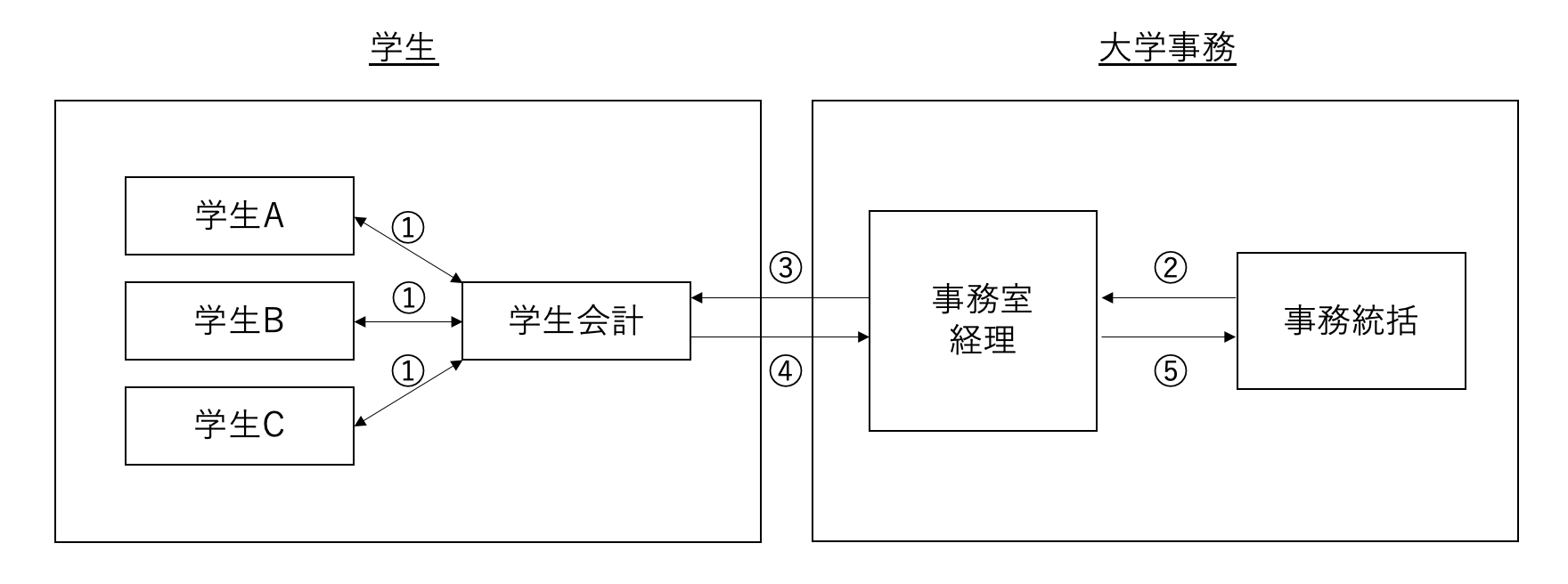 ④学生会計は「学生会」通帳から現金を引き出し、期日までに事務室経理に持参します。