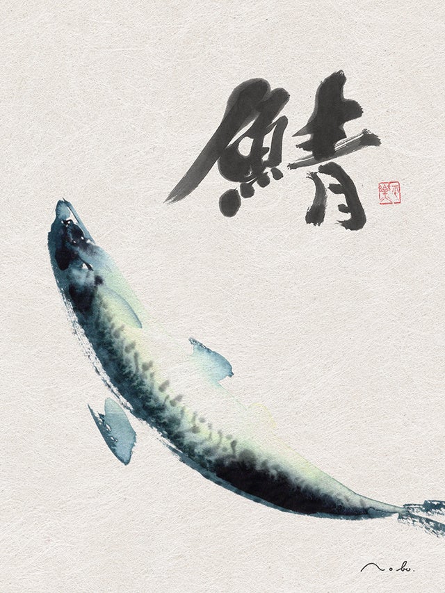 NFTアートの開発には水彩画家の加藤ノブヤ氏と書道家の平樂大龕氏が参加。プロのアーティストと書道家が伝統的な墨文字と水彩技法でサバの美しさを表現し、最高品質のアート作品を生み出すことができました。